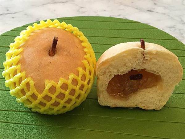 麵包外觀做成水梨的外貌,切開麵包來看,