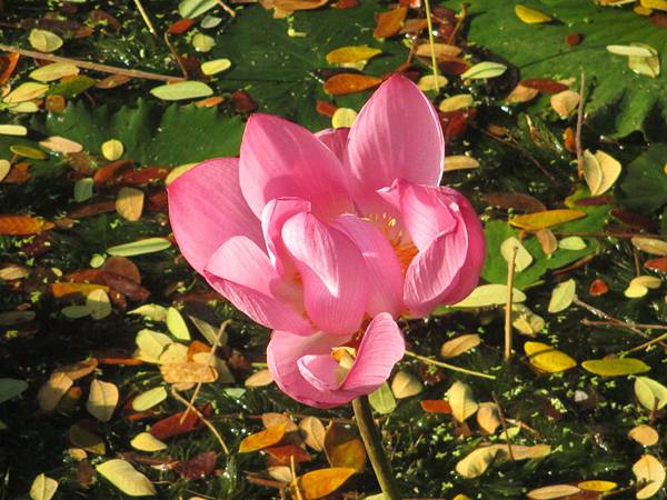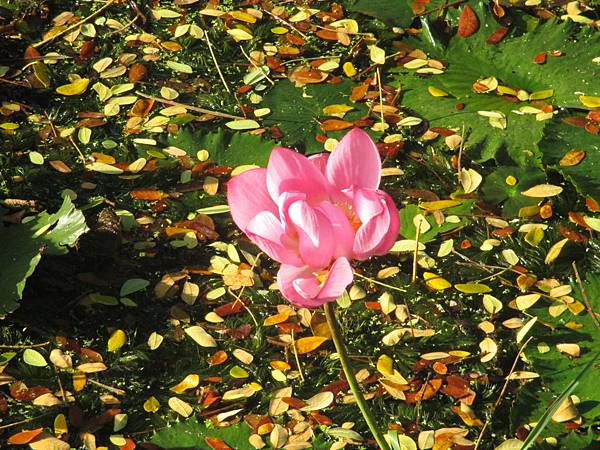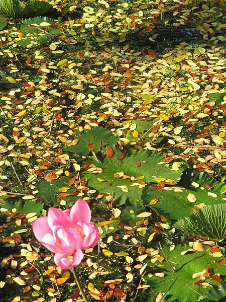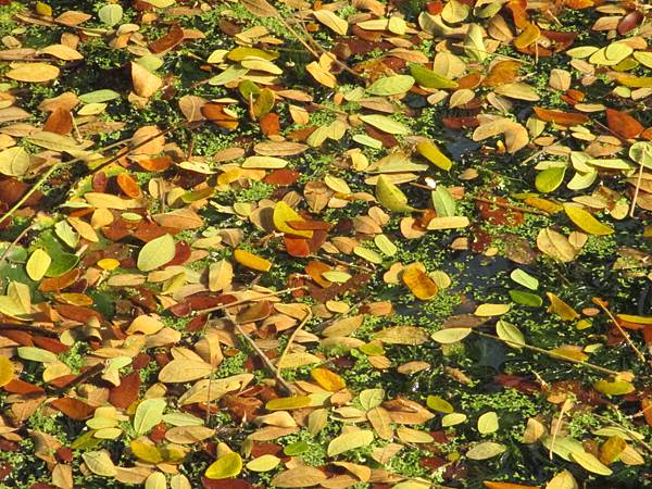 小池塘落葉的色彩繽紛點綴,就像是一幅印象派的作品。