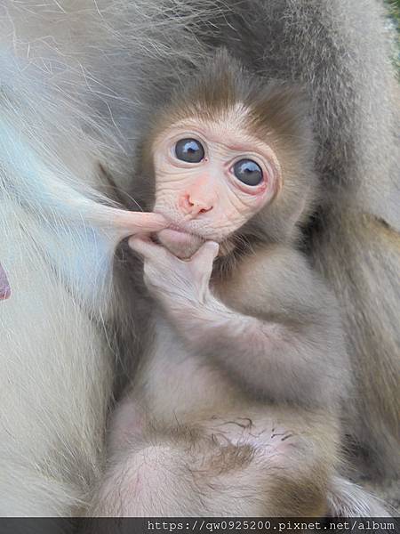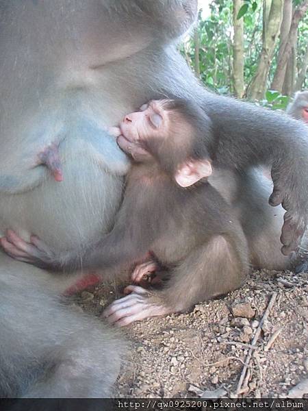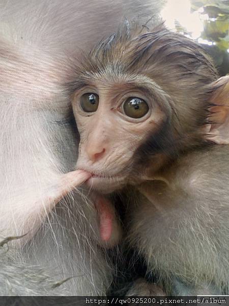 拍攝猴子,我最喜歡拍攝猴寶寶吸奶的萌樣,