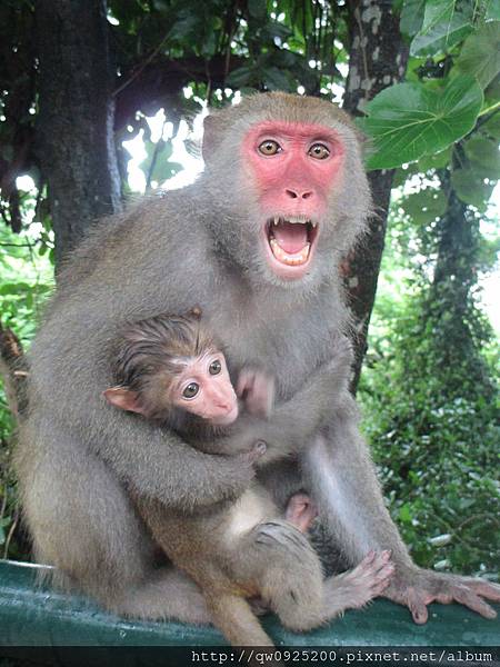 若是讓小猴子受到驚擾,母猴子也會採取保護的動作,