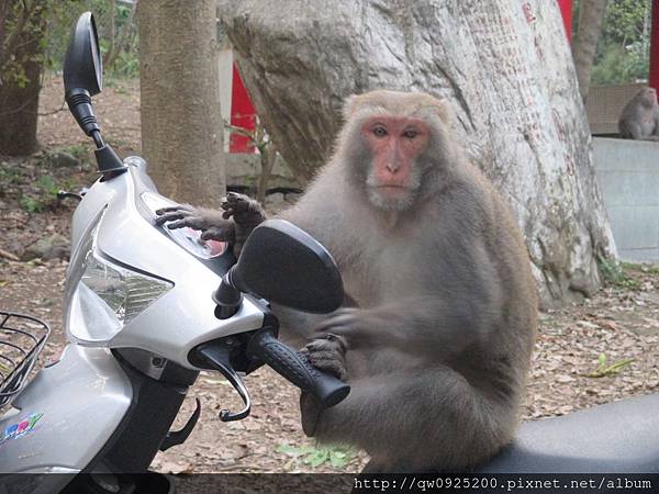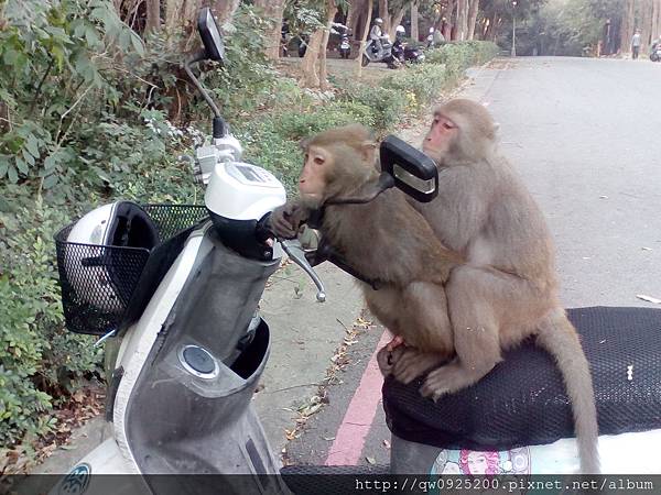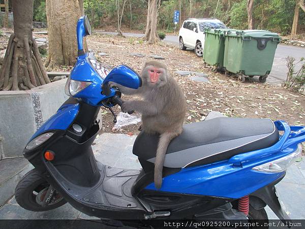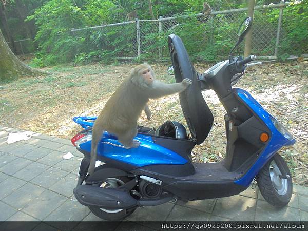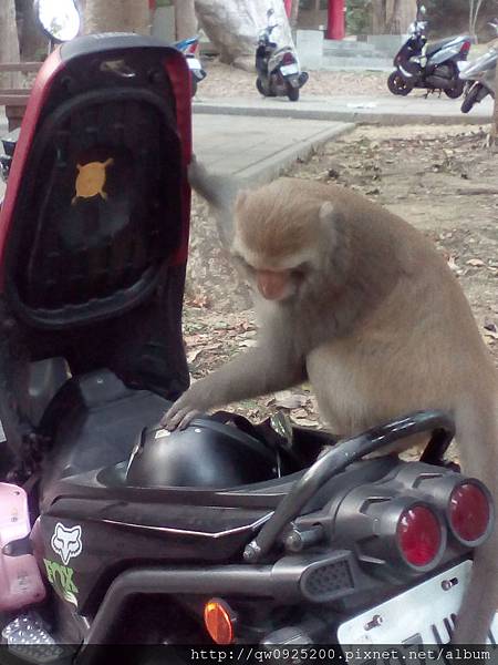 (機車置物箱有關好,猴子們沒有鑰匙和工具打不開,