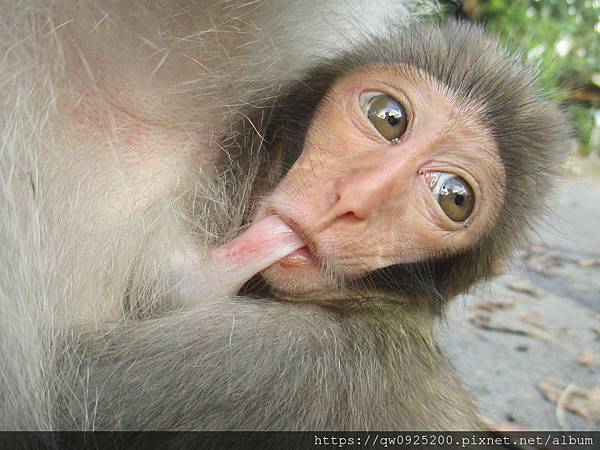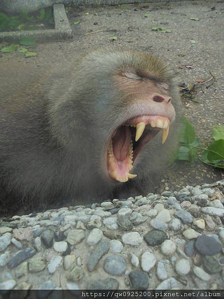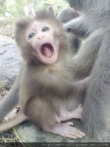 這時,母猴在旁邊,會有防衛警戒心,會出現威嚇你的動作。