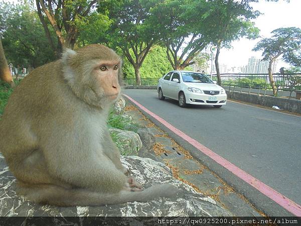 猴出沒壽山動物園前的道路,駕駛人請減速慢行!