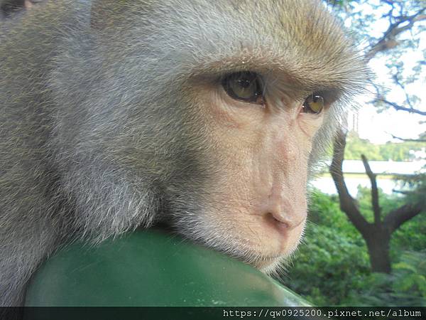 猴子們在步道休憩,保全卻用空氣槍把牠們趕走。