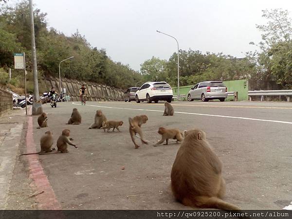 猴子也會成群結隊的出現在山腳下的大馬路旁邊,讓你看見。