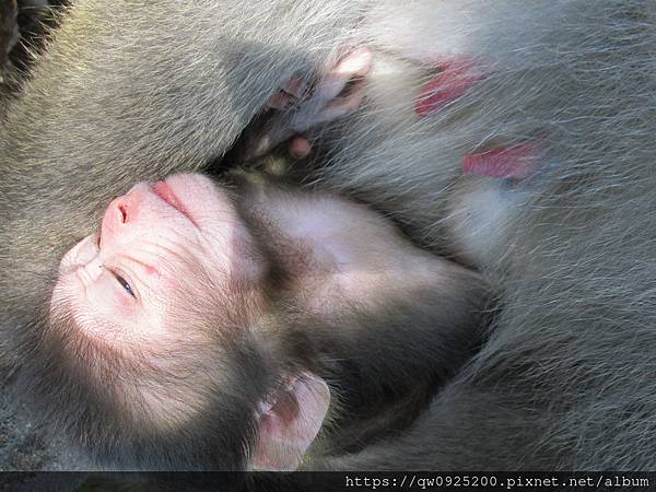在母猴的懷抱中吸奶的萌樣,真是人見人愛!